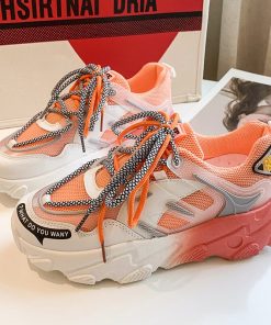 Chunky Sneakers Woman Breathable Running Shoes Fashion Rainbow Dad Mesh Platform Ladies Casual Flat