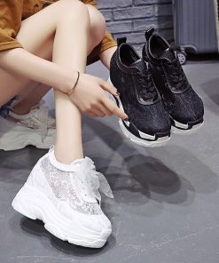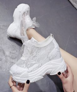 White Sport Sneakers Women Sports Shoes Female Height Increasing Shoes Lace Flowers Summer Gym Walking Shoes Women