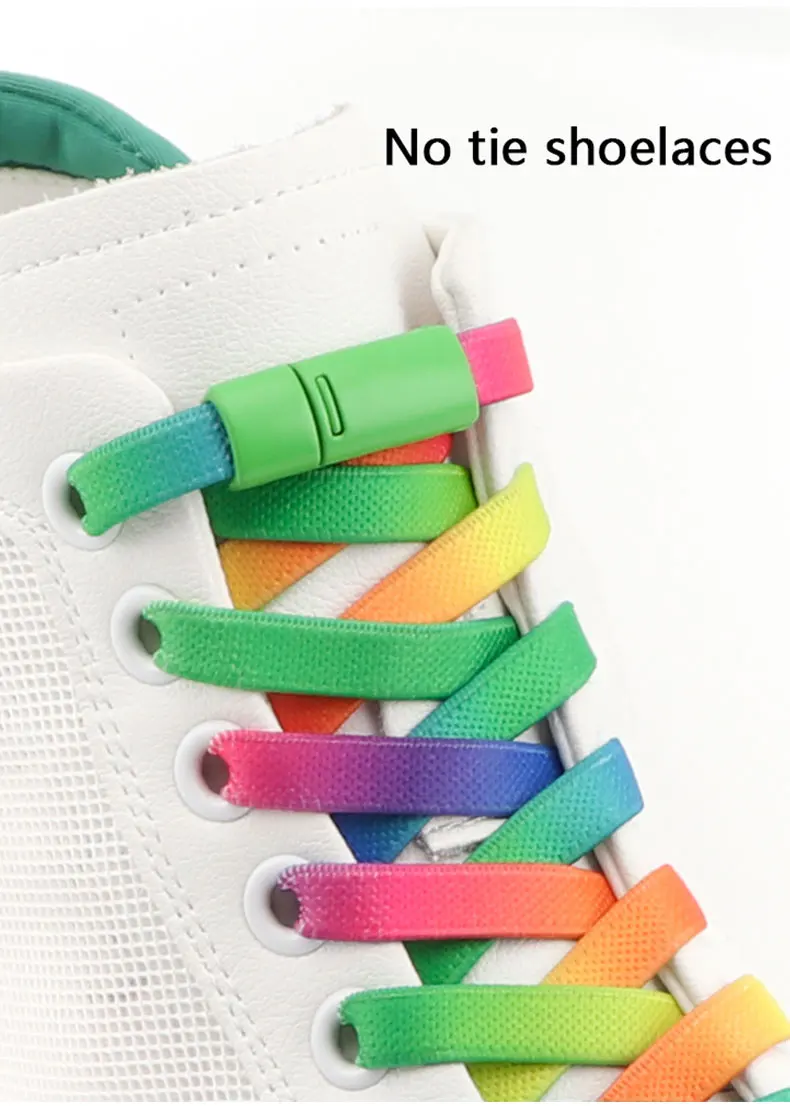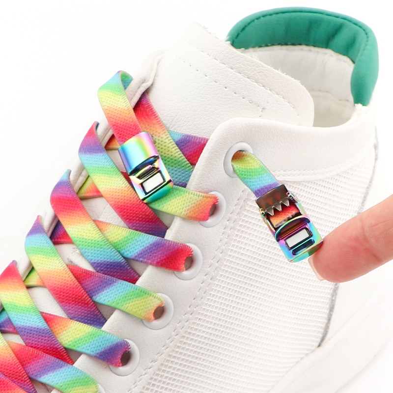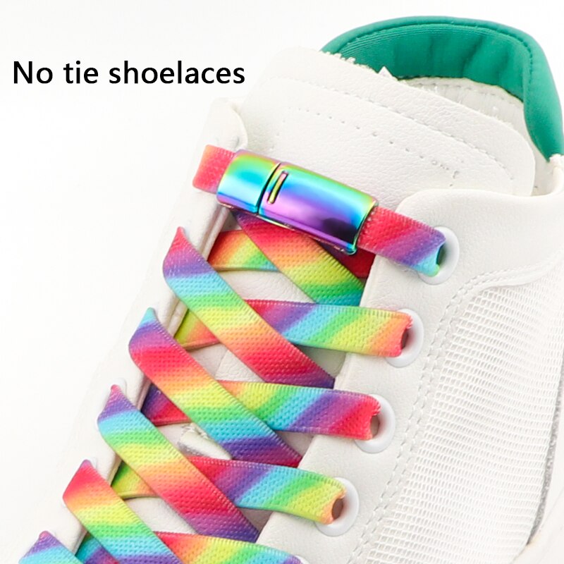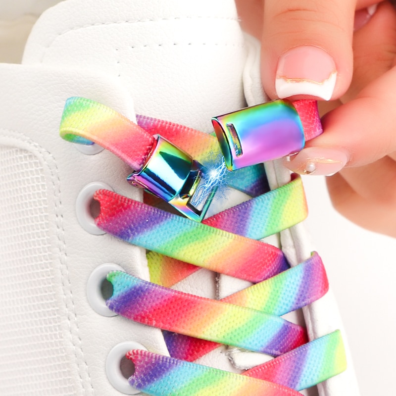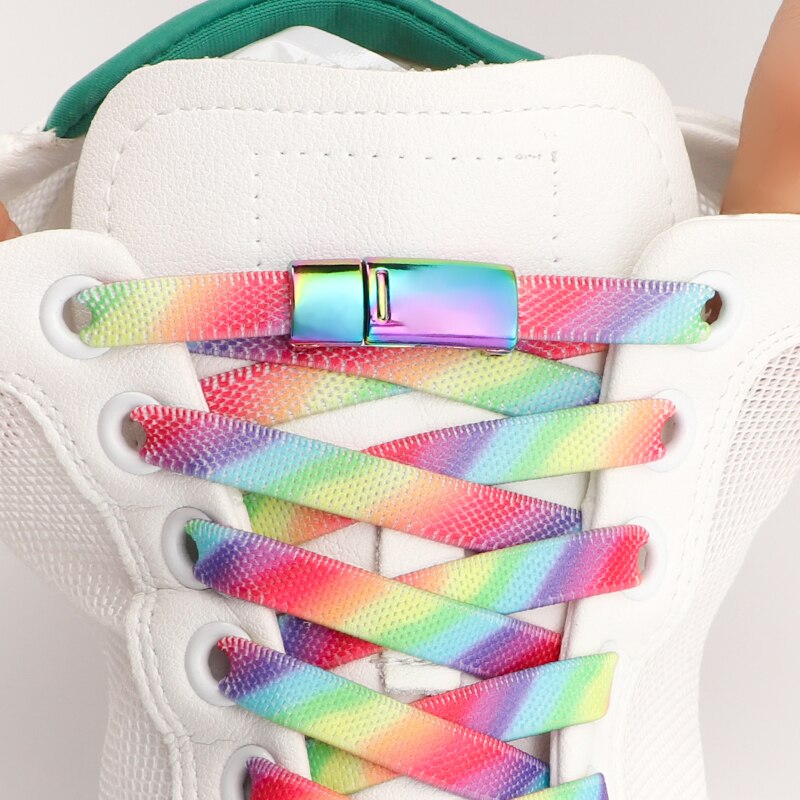 Rainbow Magnetic Lock Shoelaces Elastic Sneaker Laces Adults Kids 8MM Wide Flats Rubber No Tie Shoe laces Shoe Accessories