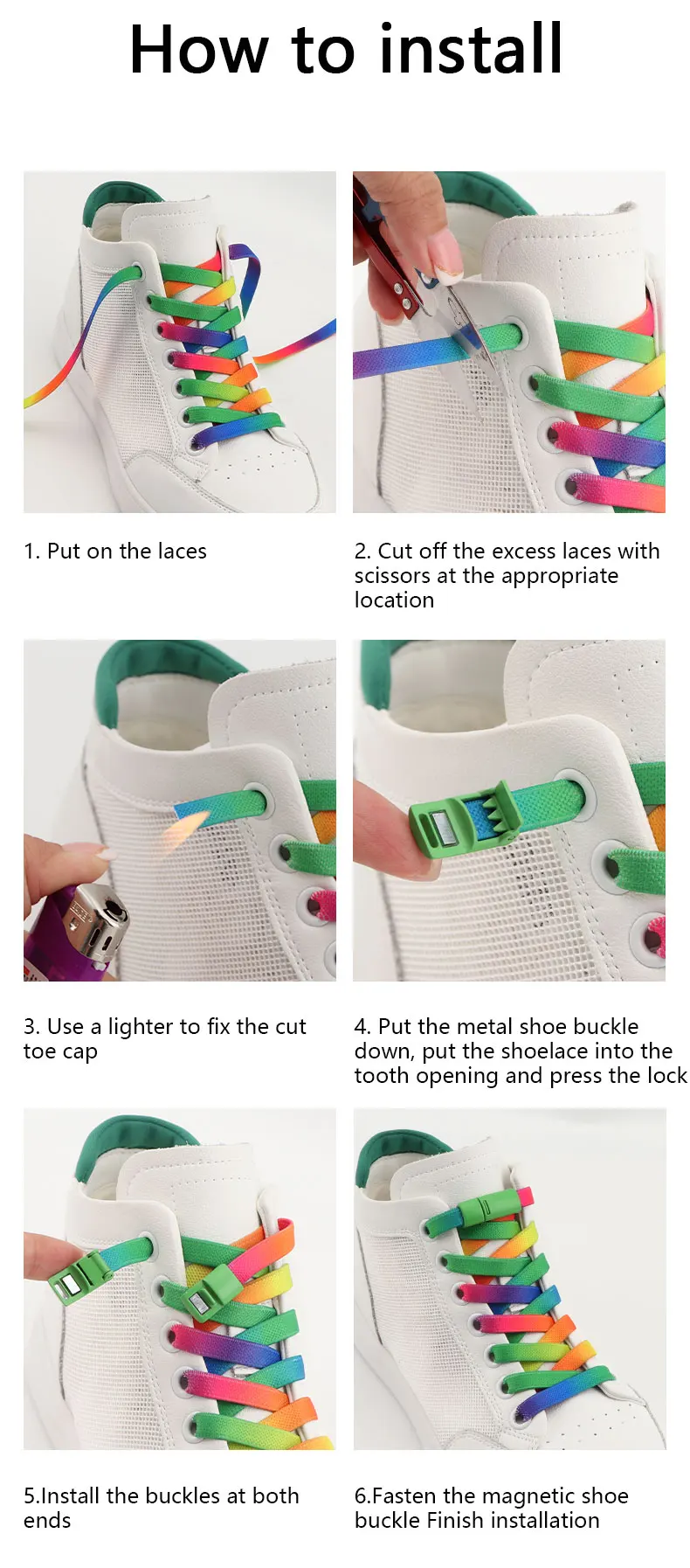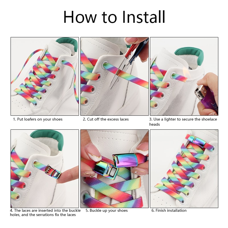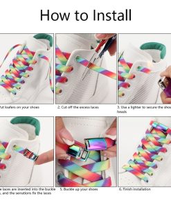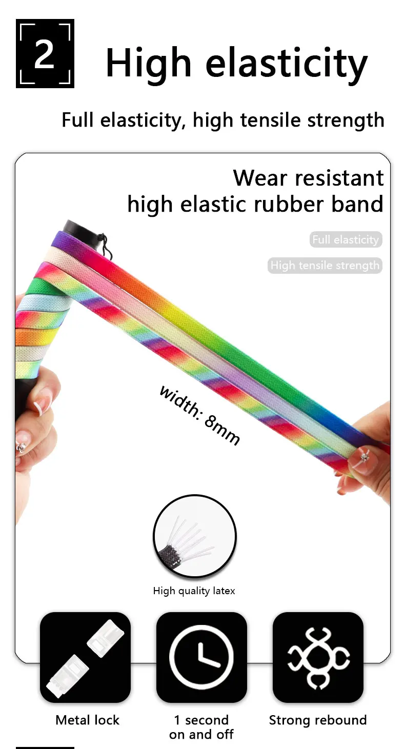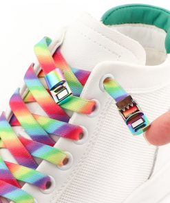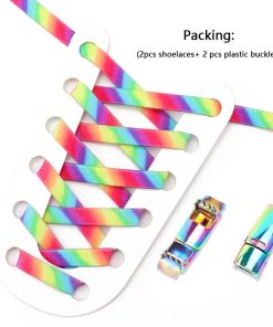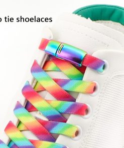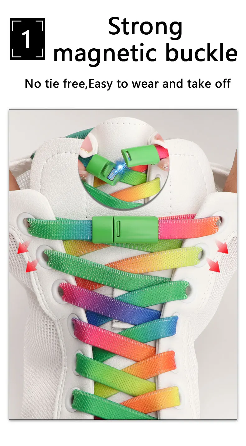 Rainbow Magnetic Lock Shoelaces Elastic Sneaker Laces Adults Kids 8MM Wide Flats Rubber No Tie Shoe laces Shoe Accessories